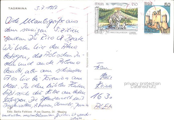 old postcard Taormina Sizilien postalisch gelaufen Erhaltung siehe scans