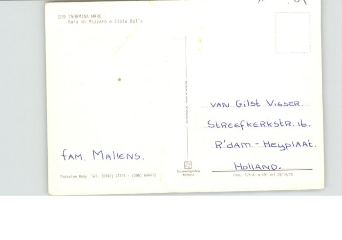 old postcard Taormina Sizilien Baia Mazzaro Isola Bella postalisch gelaufen