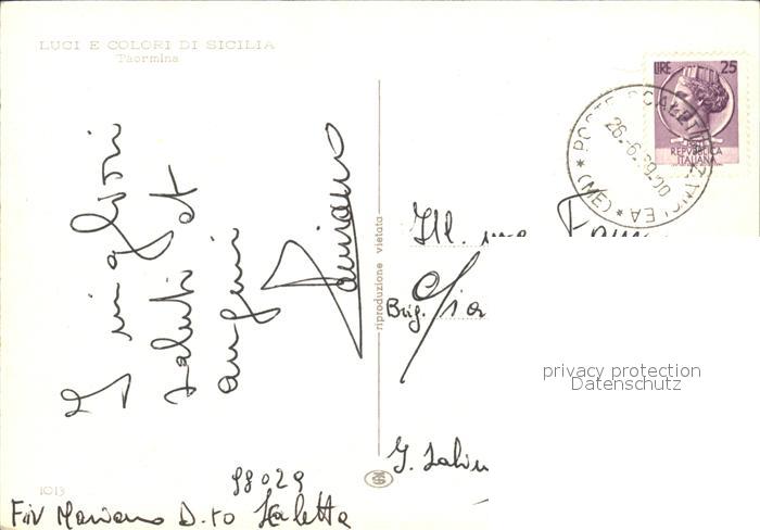 old postcard Taormina Sizilien Bootsanlegestelle Strand postalisch gelaufen Erhaltung siehe scans