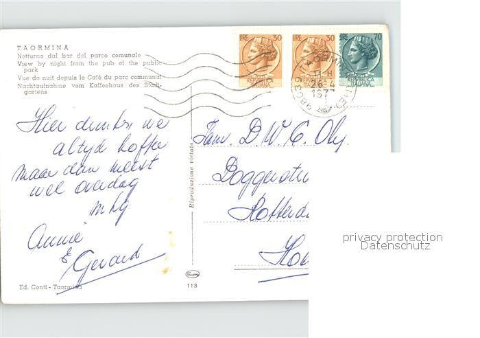 old postcard Taormina Sizilien Cafe Park postalisch gelaufen Erhaltung siehe scans