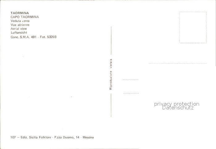 Taormina Sizilien Capo Taormina veduta aerea Kueste postalisch nicht gelaufen Erhaltung siehe scans