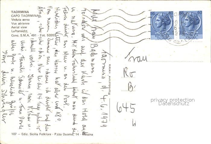 old postcard Taormina Sizilien Capo veduta aerea postalisch gelaufen Erhaltung siehe scans