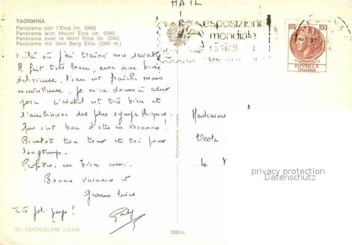 old postcard Taormina Sizilien Etna postalisch gelaufen Erhaltung siehe scans [NatalD47]