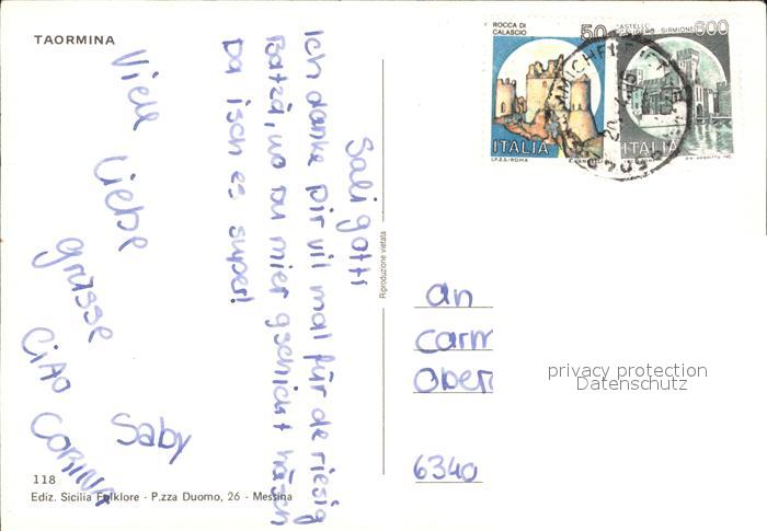 old postcard Taormina Sizilien Fliegeraufnahme postalisch gelaufen Erhaltung siehe scans [AndreD76]