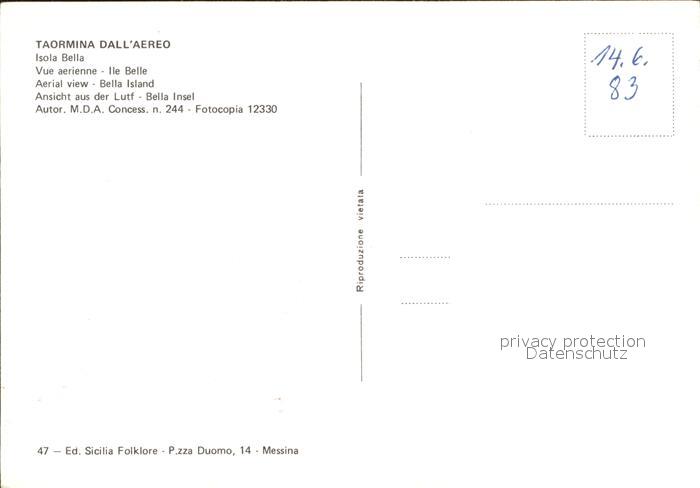 Taormina Sizilien Fliegeraufnahme postalisch nicht gelaufen Erhaltung siehe scans