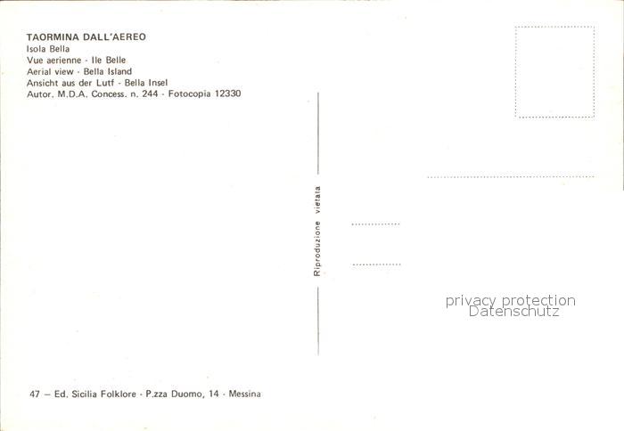 Taormina Sizilien Fliegeraufnahme postalisch nicht gelaufen Erhaltung siehe scans