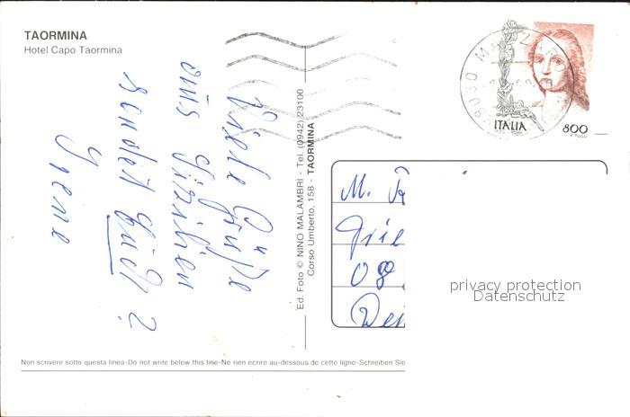 old postcard Taormina Sizilien Fliegeraufnahme Hotel Capo postalisch gelaufen Erhaltung siehe scans