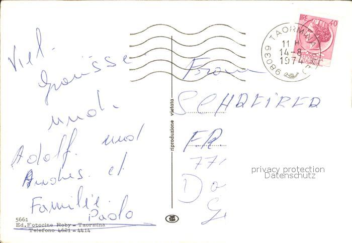 old postcard Taormina Sizilien Gole Alcantara Details postalisch gelaufen Erhaltung siehe scans