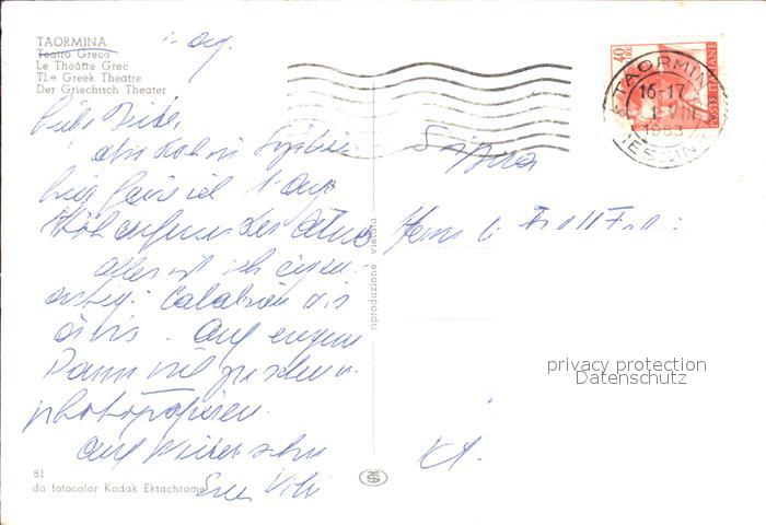 old postcard Taormina Sizilien Grichesch Theater postalisch gelaufen