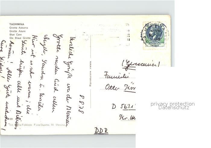 old postcard Taormina Sizilien Grotta Azzura postalisch gelaufen Erhaltung siehe scans