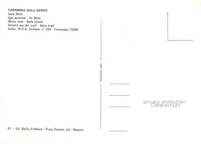 Taormina Sizilien Isola Bella Fliegeraufnahme postalisch nicht gelaufen Erhaltung siehe scans [WerneD78]