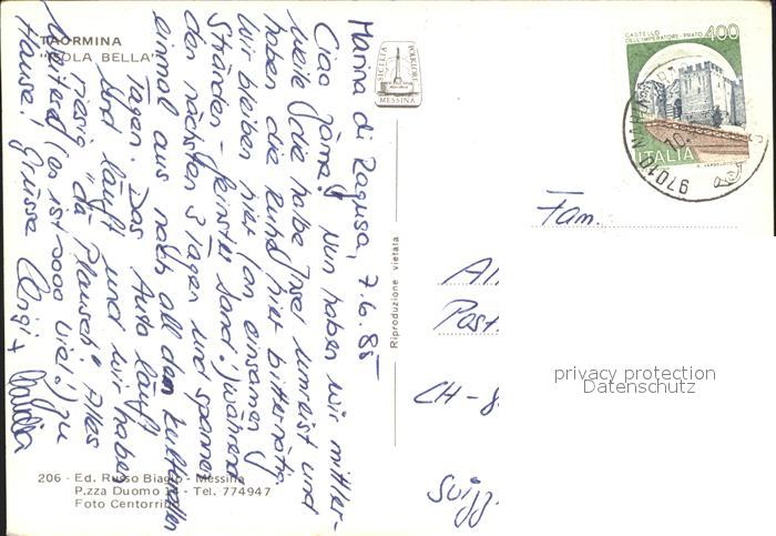 old postcard Taormina Sizilien Isola Bella Kueste Strand postalisch gelaufen Erhaltung siehe scans