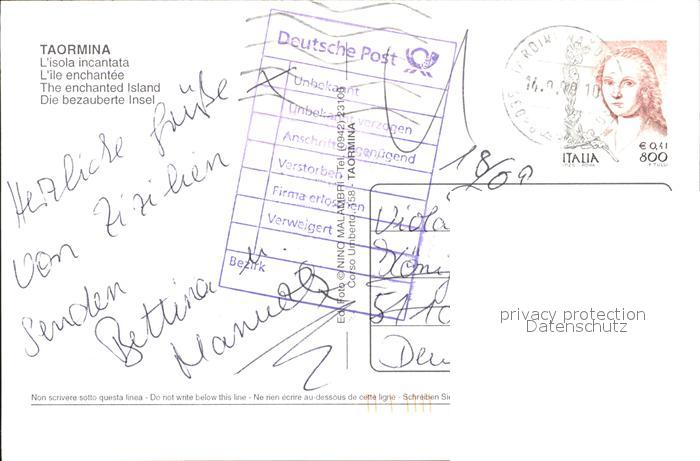 old postcard Taormina Sizilien Isola Incantata postalisch gelaufen Erhaltung siehe scans