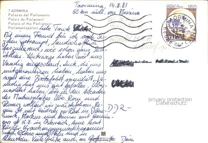old postcard Taormina Sizilien Palazzo del Parlamento postalisch gelaufen Erhaltung siehe scans