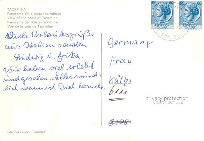 old postcard Taormina Sizilien Panorama della costa veduta aerea postalisch gelaufen Erhaltung siehe scans [FriedD77]