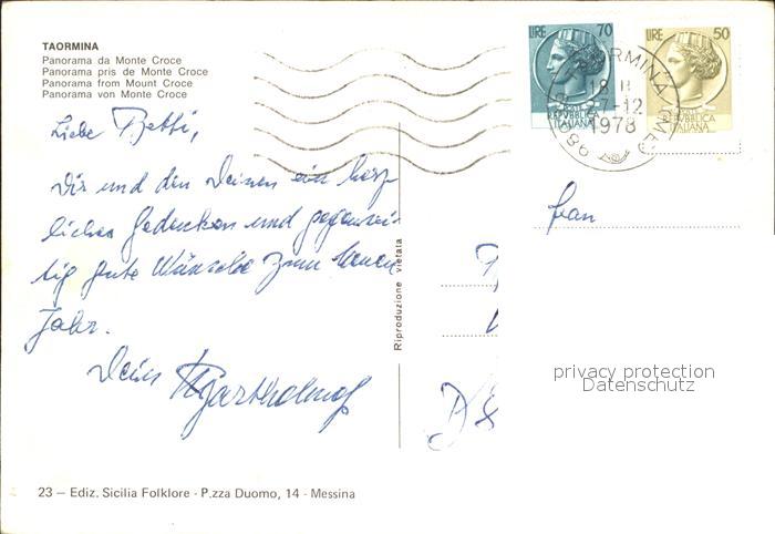 old postcard Taormina Sizilien Panorama von Monte Croce postalisch gelaufen Erhaltung siehe scans
