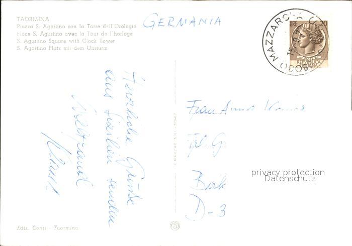 old postcard Taormina Sizilien Piazza San Agostino con la Torre dell Orologio postalisch gelaufen Erhaltung siehe scans