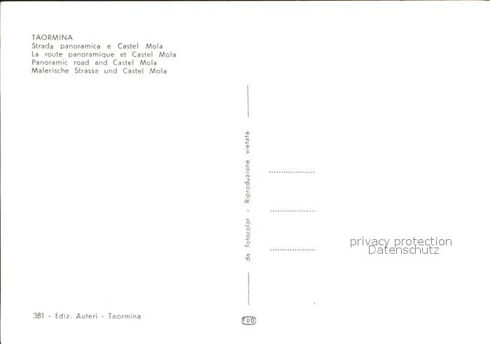 Taormina Sizilien Strada panoramica e Castel Mola postalisch nicht gelaufen Erhaltung siehe scans