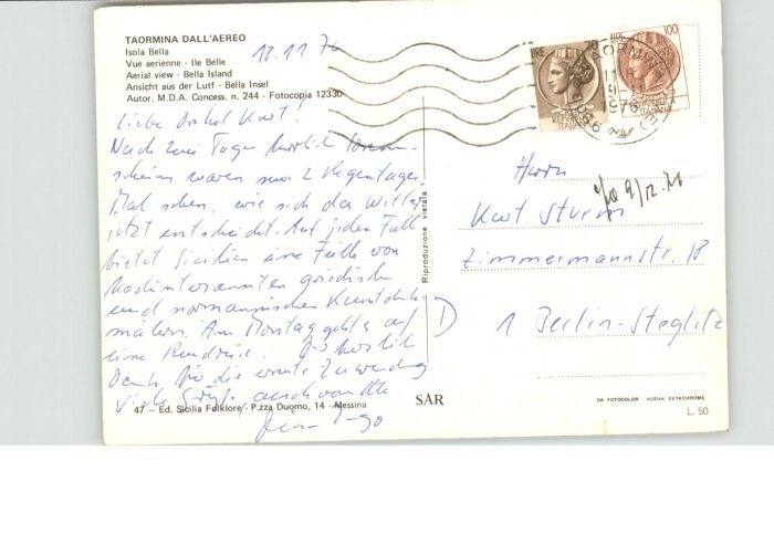 Taormina Sizilien Taormina Aereo Isola Bella Insel Fliegeraufnahme postalisch nicht gelaufen