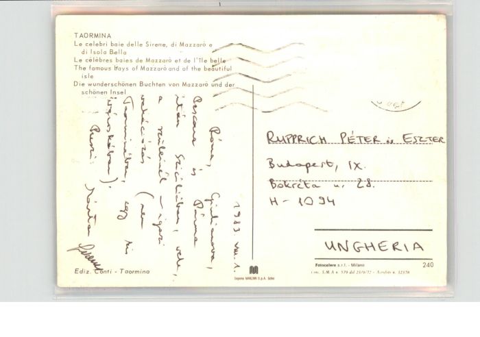 old postcard Taormina Sizilien Taormina Mazzoro Bucht postalisch gelaufen