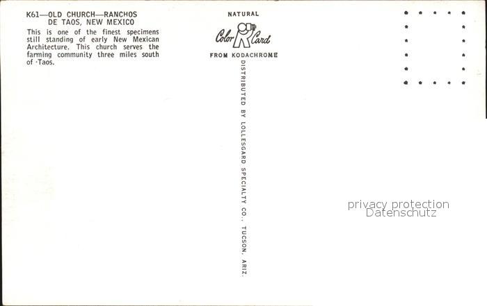 72493396 Taos Old Church Ranchos New Mexican Architecture postalisch nicht gelaufen Erhaltung siehe scans KatCode: 14140330000000