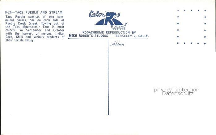 72493394 Taos Pueblo and Stream postalisch nicht gelaufen Erhaltung siehe scans KatCode: 14140330000000