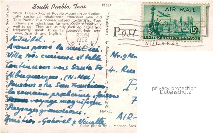 72897119 old postcard Taos South Pueblo postalisch gelaufen Erhaltung siehe scans [AndreD76] KatCode: 14140330000000
