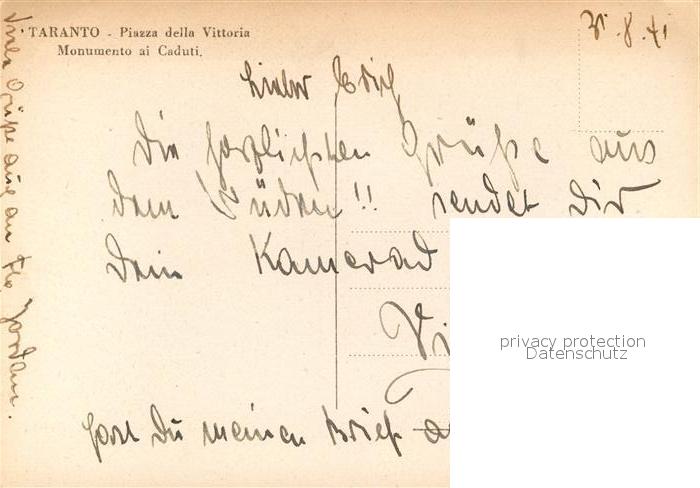 Taranto Piazza della Vittoria Monumento ai Caduti Kriegerdenkmal postalisch nicht gelaufen Erhaltung siehe scans [FriedD77]