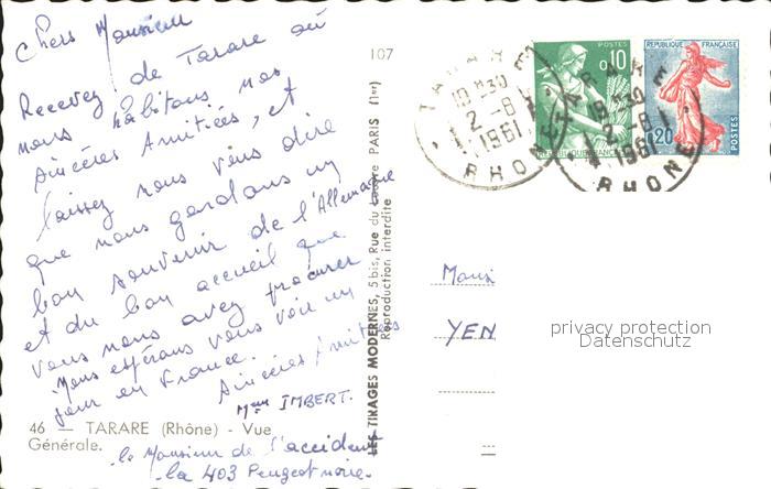 12338988 carte postale Tarare Vue Generale postalisch gelaufen Erhaltung siehe scans KatCode: 11170069269243