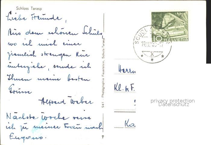 11651491 alte Postkarte Tarasp Dorfpartie Messe Schloss postalisch gelaufen Erhaltung siehe scans KatCode: 11470100325168
