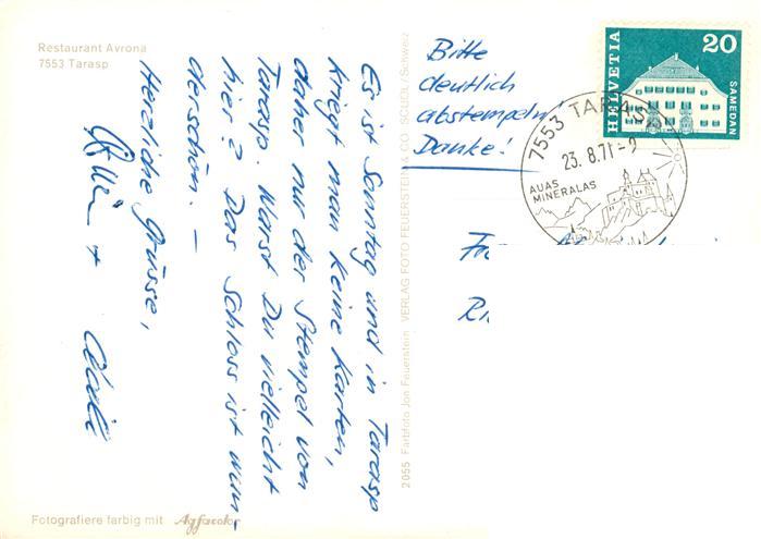 13919424 alte Postkarte Tarasp Restaurant Avrona postalisch gelaufen Erhaltung siehe scans [FriedD77] KatCode: 11470100325168