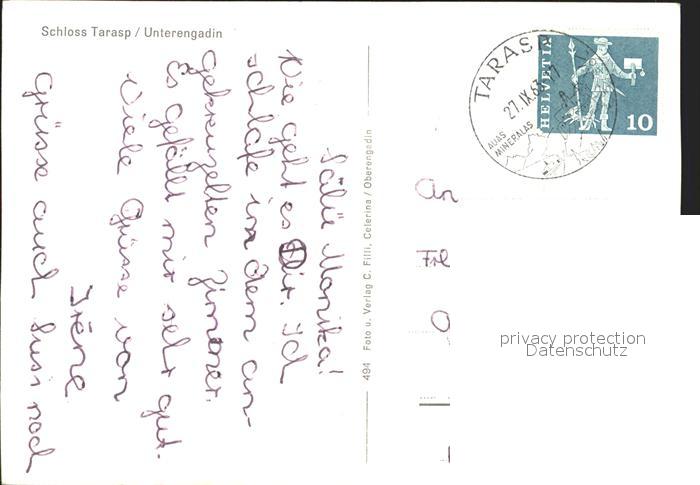 11651490 alte Postkarte Tarasp Schloss See postalisch gelaufen Erhaltung siehe scans KatCode: 11470100325168