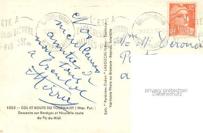 13570529 carte postale Tarbes Col et Route du Tourmalet Descente sur Barèges et nouvelle Route du Pic du Midi postalisch gelaufen Erhaltung siehe scans [FriedD77] KatCode: 11170065365440