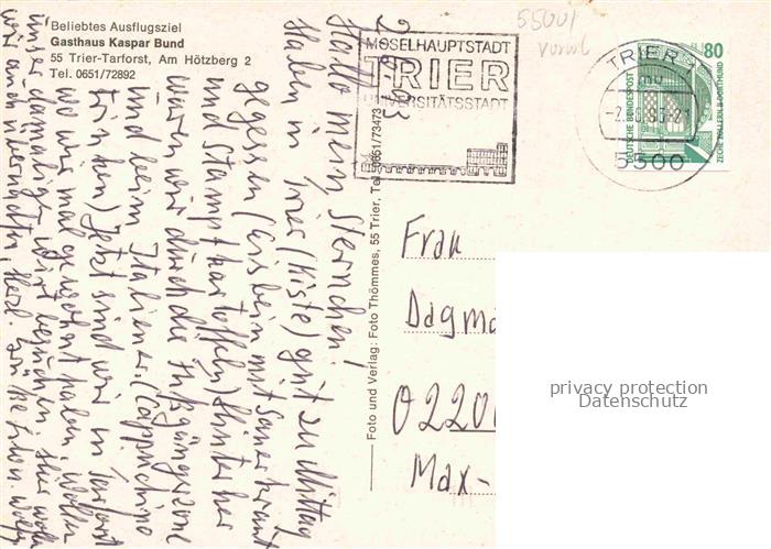 74053250 alte Postkarte Tarforst Gasthaus Kaspar Bund postalisch gelaufen Erhaltung siehe scans [FriedD77] KatCode: 11110007211000