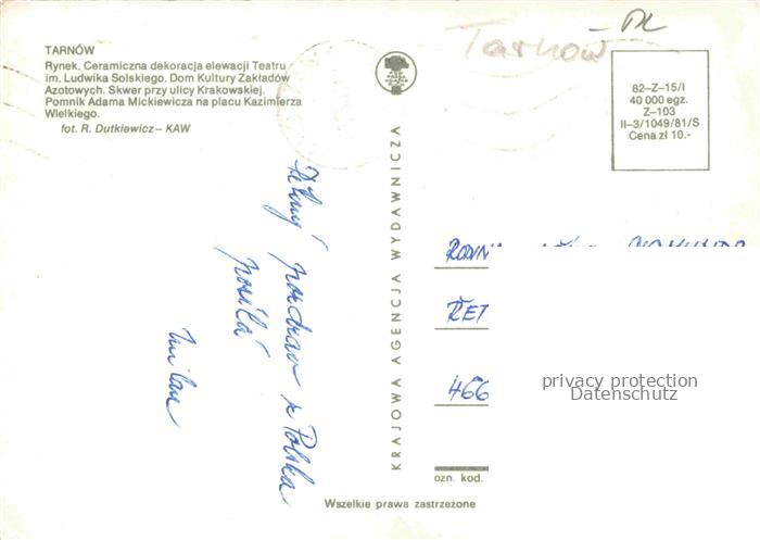 74142631 TARNOW OPOLSKI Tarnau PL Marktplatz Ludwik-Solski-Theater Fassade Kulturzentrum Platz Denkmal postalisch nicht gelaufen Erhaltung siehe scans [FriedD77] KatCode: 11410