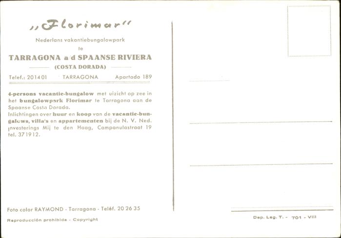 Tarragona Bungalow Park Florimar postalisch nicht gelaufen Erhaltung siehe scans