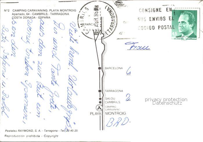old postcard Tarragona Camping Caravaning Playa Montroig postalisch gelaufen Erhaltung siehe scans