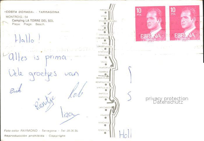 old postcard Tarragona Camping La Torre del Sol postalisch gelaufen Erhaltung siehe scans