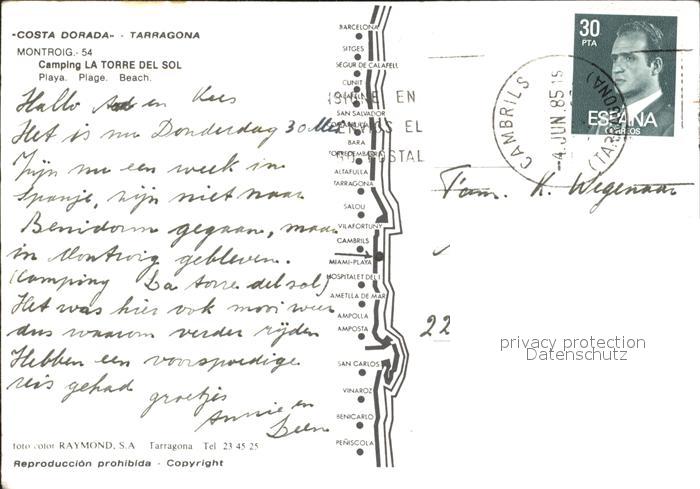 old postcard Tarragona Camping La Torre del Sol postalisch gelaufen Erhaltung siehe scans