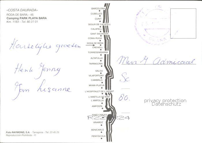 old postcard Tarragona Camping Park Playa Bara postalisch gelaufen Erhaltung siehe scans