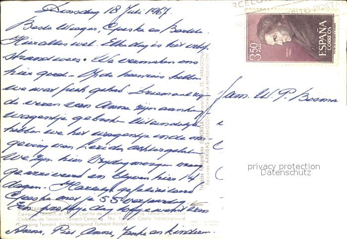 old postcard Tarragona Camping Tamarit Castillo Schloss postalisch gelaufen Erhaltung siehe scans