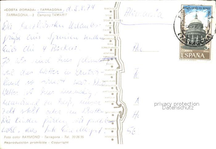 old postcard Tarragona Camping Tamarit Fliegeraufnahme postalisch gelaufen