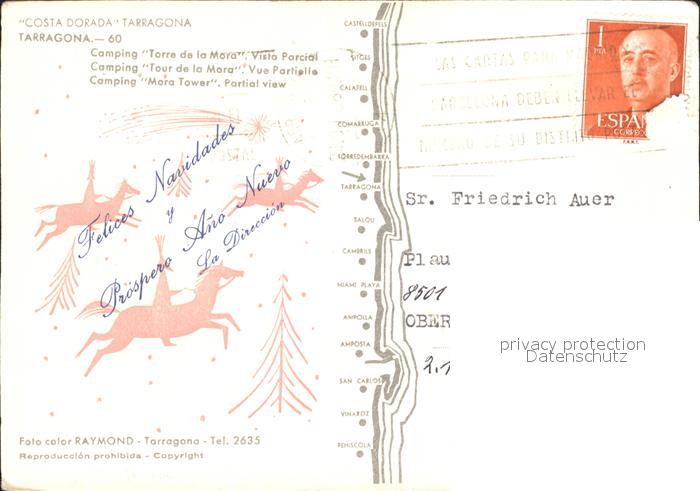 old postcard Tarragona Camping Torre de la Mara postalisch gelaufen Erhaltung siehe scans
