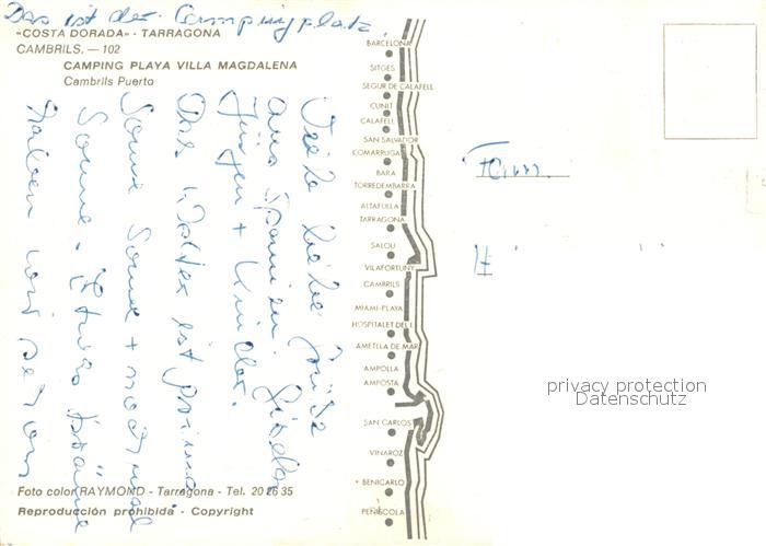 Tarragona Camping Villa Madgalena postalisch nicht gelaufen Erhaltung siehe scans [LiesaD40]