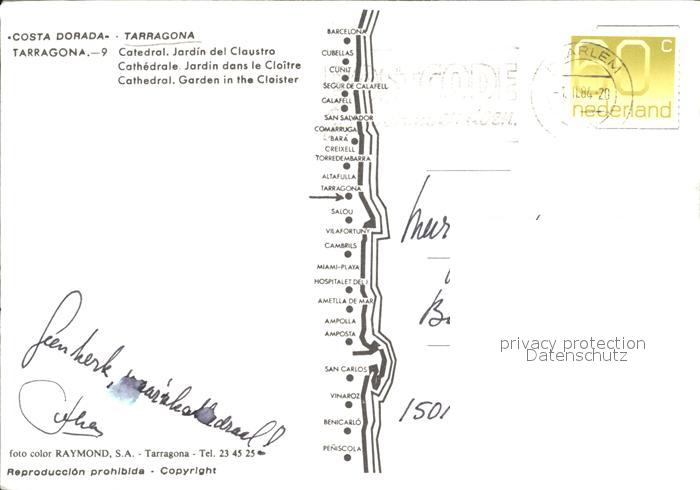 old postcard Tarragona Catedral Jardin del Claustra postalisch gelaufen Erhaltung siehe scans