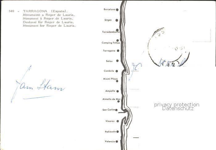 old postcard Tarragona Denkmal Roger de Lauria postalisch gelaufen Erhaltung siehe scans