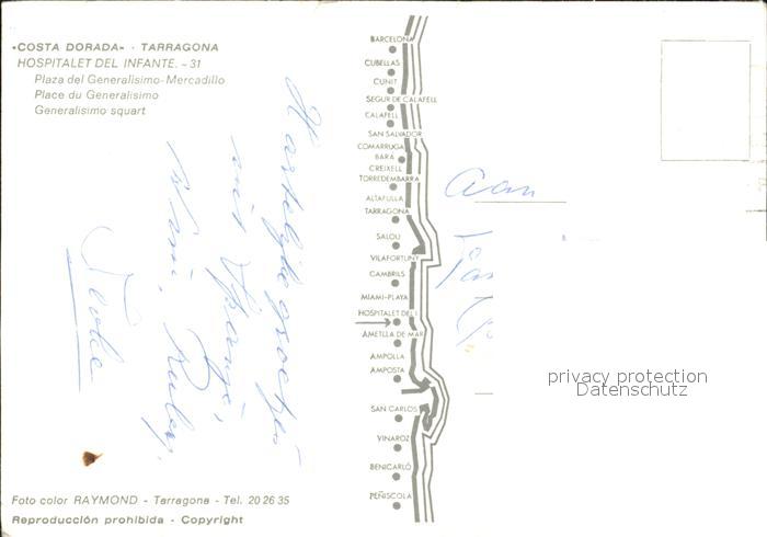 old postcard Tarragona Hospitalet del Infante Markt postalisch gelaufen Erhaltung siehe scans