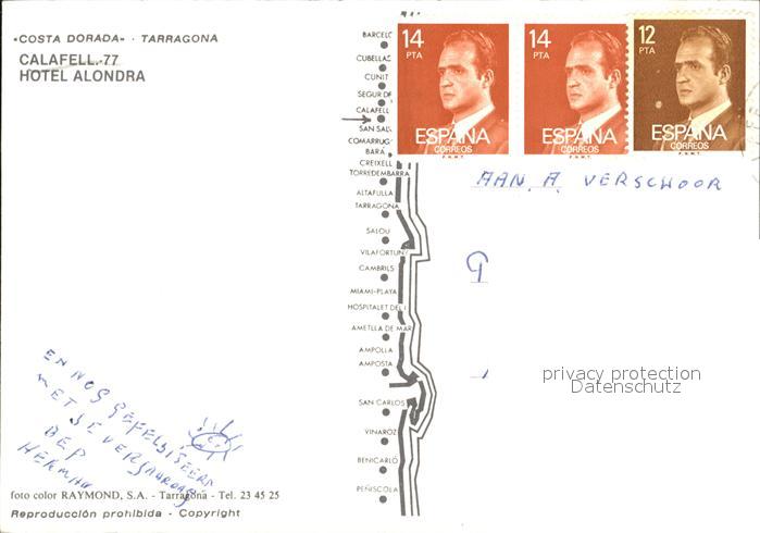 old postcard Tarragona Hotel Alondra postalisch gelaufen Erhaltung siehe scans