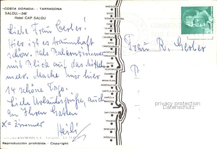 old postcard Tarragona Hotel Cap Salou postalisch gelaufen