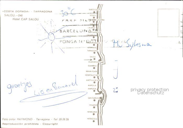 old postcard Tarragona Hotel Cap Salou Strand postalisch gelaufen Erhaltung siehe scans